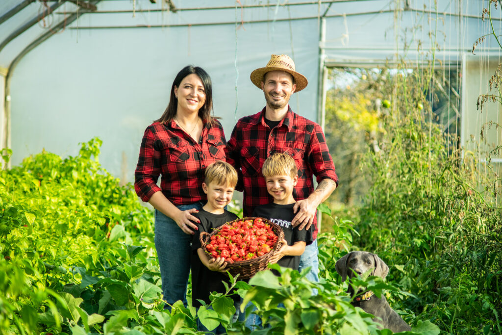 Začeli smo z dvanajstimi sadikami čili paprike, ki mi jih je brat podaril za rojstni dan. Danes na naši ekološki kmetiji v rastlinjaku vzgajamo več različnih vrst čilijev  in okoli 500 sadik.